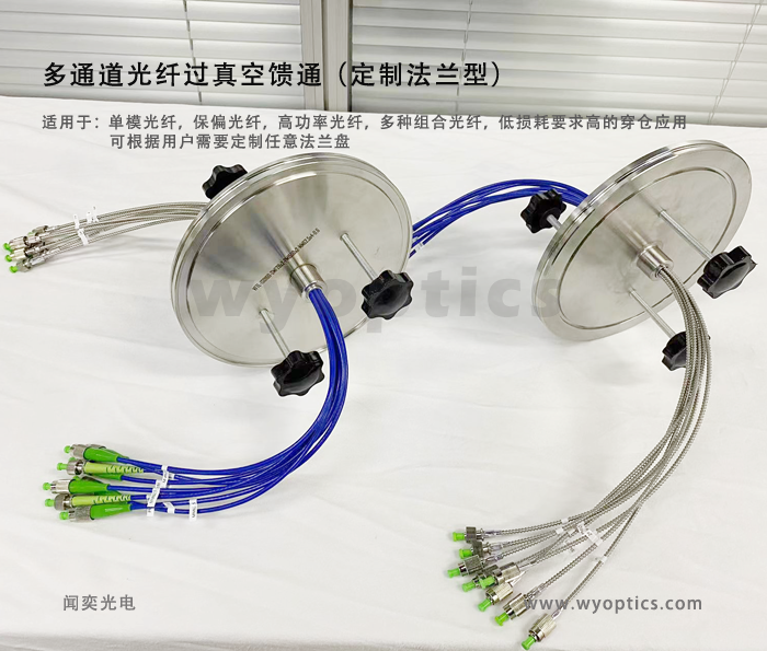 其兼容闻奕光电生产的真空多模光纤跳线,使得用户可以通过光纤线缆将光从外部环境耦合到一个真空腔室中在真空环境中使用光纤跳线时,请确保线缆兼容真空(建议搭配闻奕光电真空光纤)。